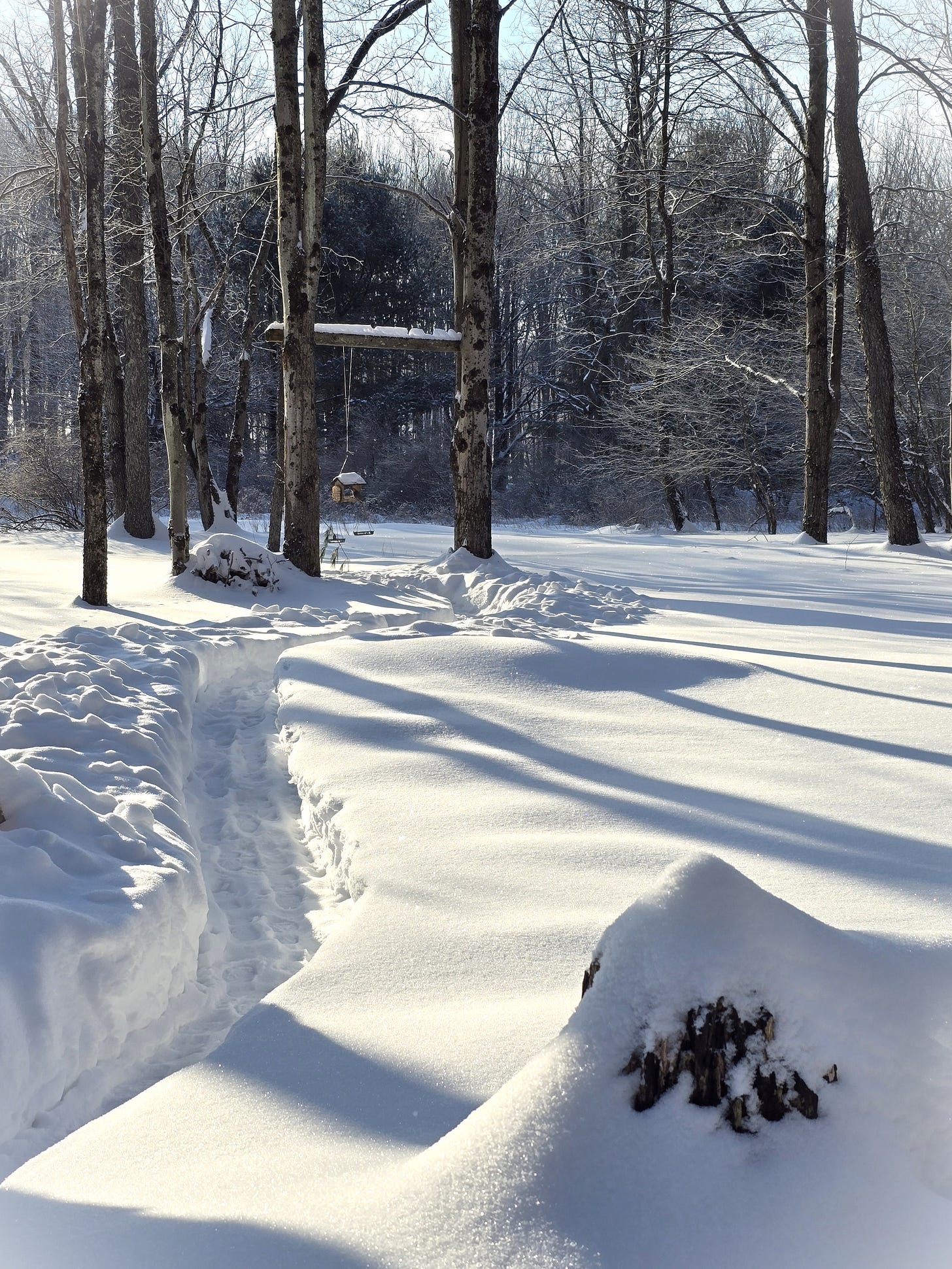 They are always waiting. A chickadee landed on my shoulder while I was putting seed in the feeder. Waited. Sang a little encouragement.