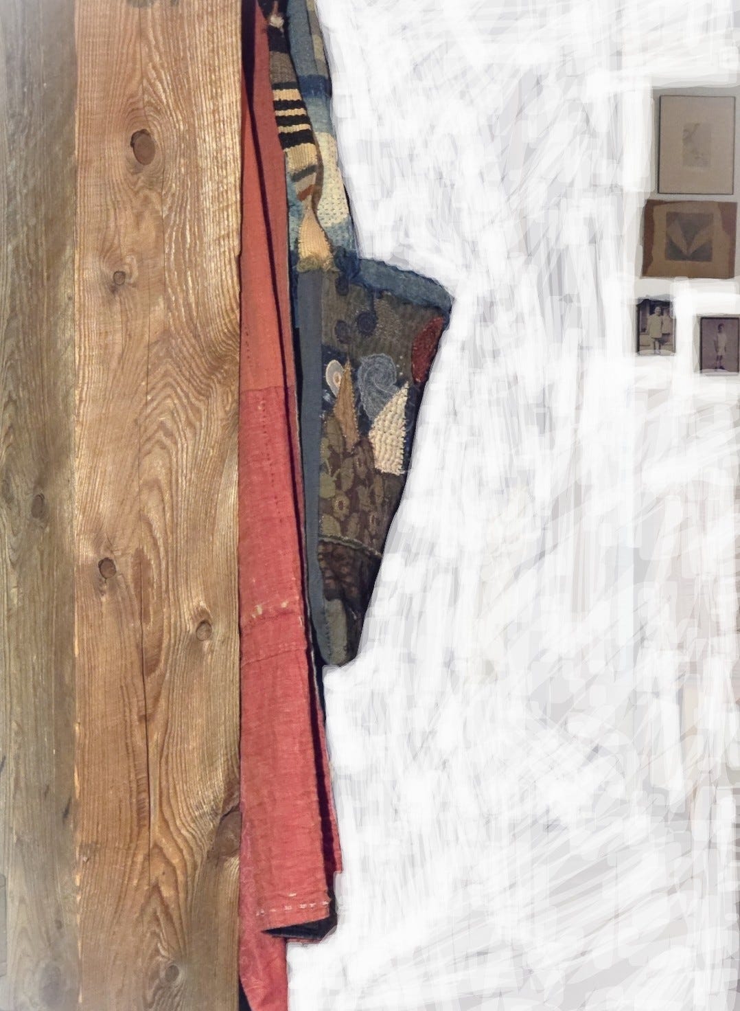 Just bringing some attention to stuff hanging around. The sketchy erasing changes the character of the photo elements, doesn’t it?